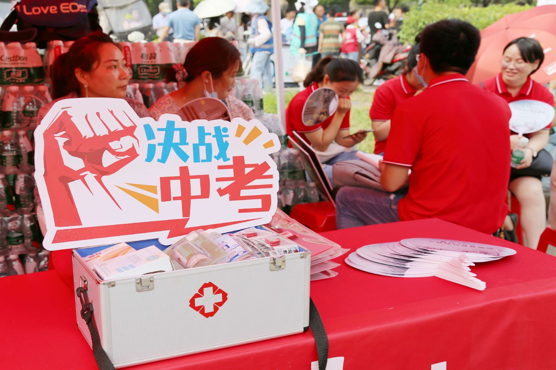 盛夏時節(jié),烈日當(dāng)空,為了給考生們提供優(yōu)質(zhì)高效的愛心服務(wù),全方位為中考保駕護航,營造安全放心、和諧有序的考試環(huán)境,志愿者們在合肥世界外國語學(xué)校設(shè)置志愿服務(wù)點,積極熱情地為考生和家長服務(wù)。