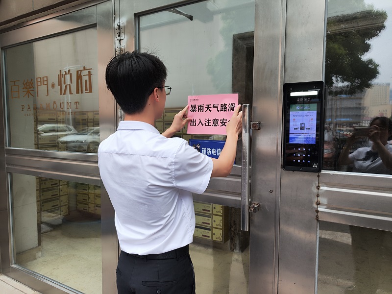 ②溫馨提示:為增強(qiáng)廣大業(yè)主的防汛意識,各項(xiàng)目通過公告欄、微信群、朋友圈等方式及時(shí)向業(yè)主傳達(dá)天氣情況以及防汛溫馨提示。